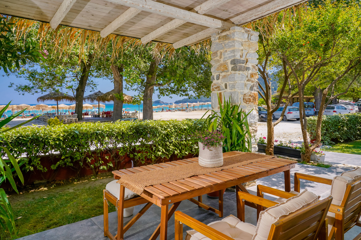 The One Bedroom Apartments Sea View of Studios Aigaio are on the ground floor and can accommodate up to four people. It is ideal for families with up to two children or couples that require more space. The One Bedroom features a separate bedroom with…