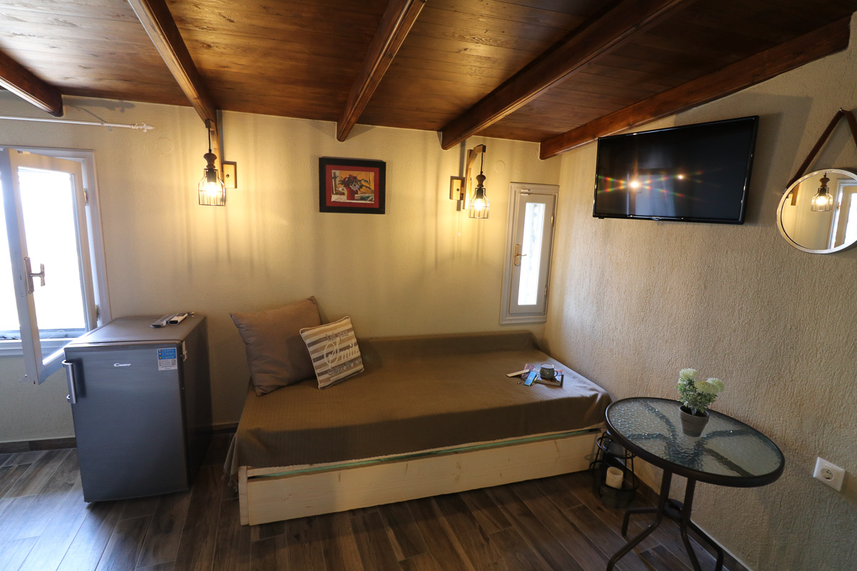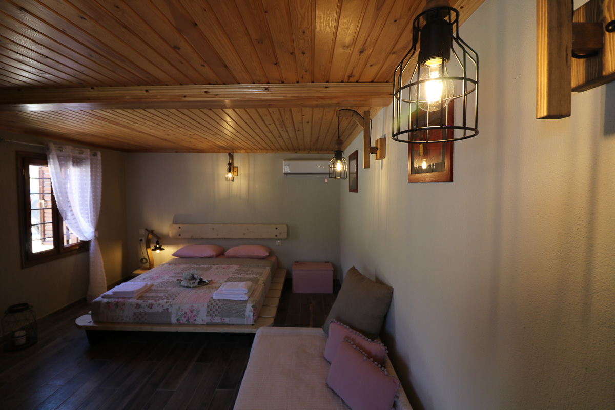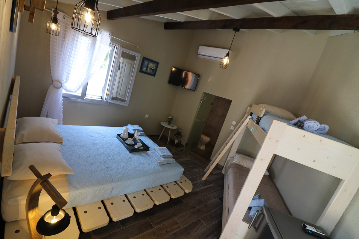 Our quadruple room is designed to offer comfort and privacy for families and groups. This room features one double bed combined with a bunk bed, ensuring flexibility and a comfortable stay. It also include a private bathroom, while in the outdoor area guests have access…