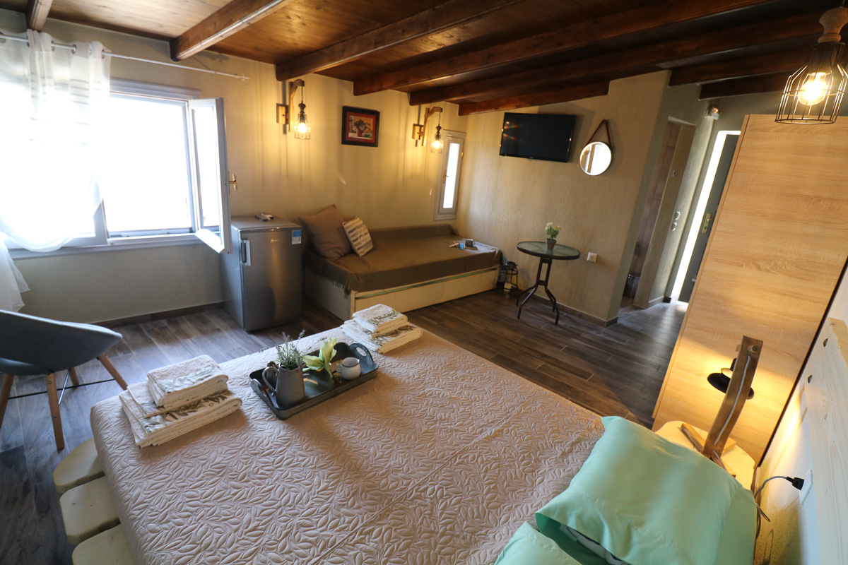 Our quadruple rooms are designed to offer comfort and privacy for families and groups. Each room features one double bed combined with two single beds, ensuring flexibility and a comfortable stay. All rooms include a private bathroom, while in the outdoor area guests have access…
