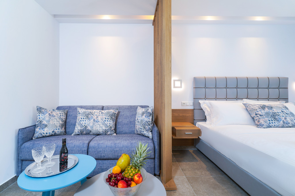The quadruple studio is an open plan studio on the upper floor that has a double bed and a double sofa bed. The studio is spacious elegantly decorated and can accommodate up to four people. The studio has an en-suite bathroom and several amenities that…