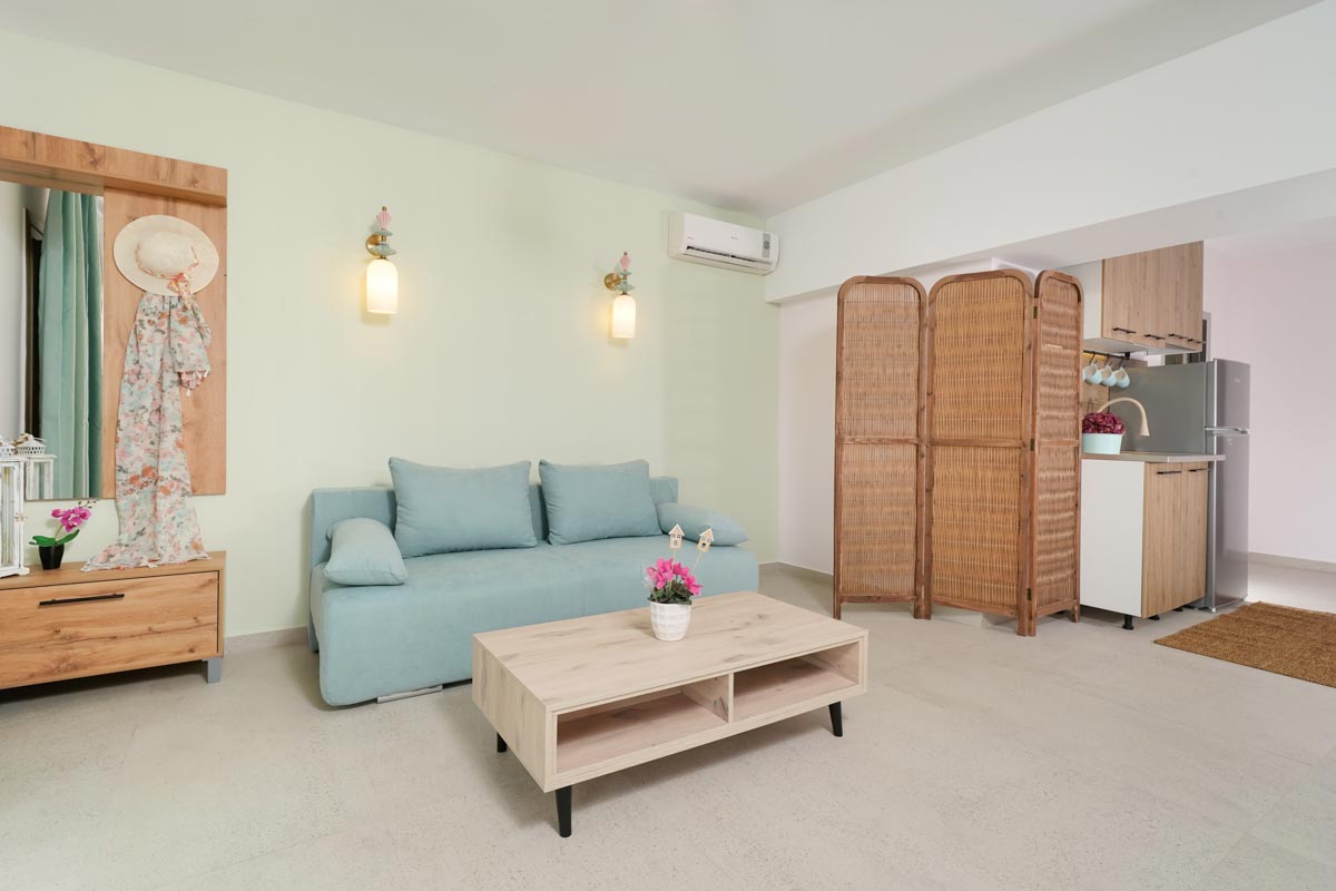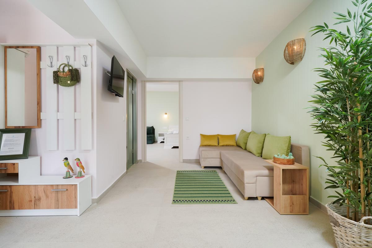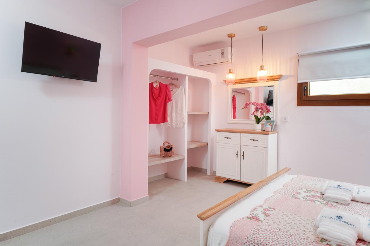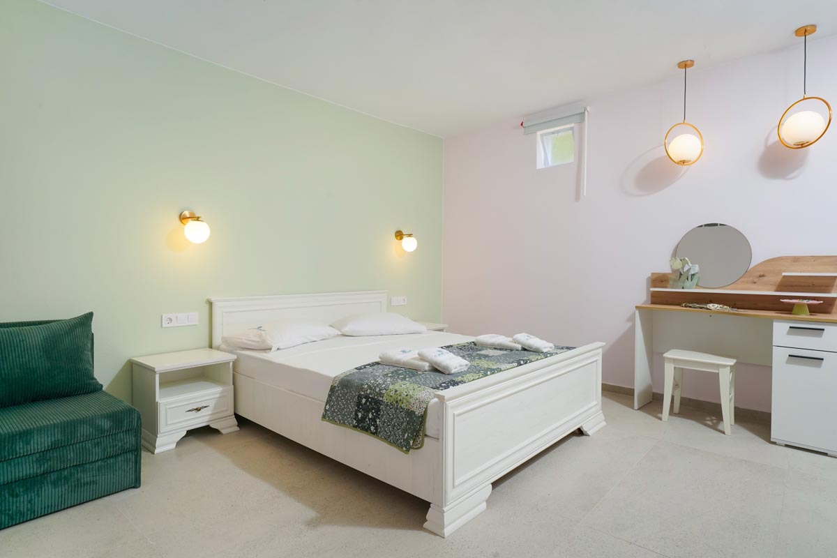 The triple room can accommodate up to three guests in its comfortable double bed while one more can make use of the single sofa bed. The bathroom is spacious and ultra-modern. Lastly each room has direct access to a furnished balcony with village view.